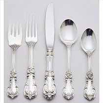 Burgundy Sterling Silver 5-Piece Flatware Place Set Includes: 1 place knife 1 place fork 1 place spoon 1 salad fork and 1 teaspoon.